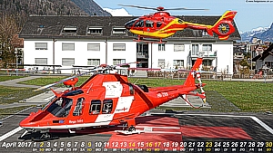 Kalenderblatt April 2017 Agusta-Westland AW 109 Da Vinci HB-ZRN + Airbus H135 HB-ZRK der